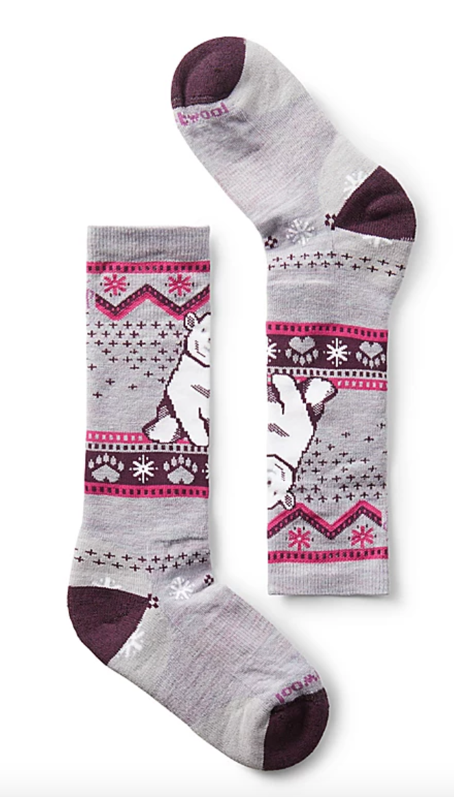 Get them ready for a full day of exploring in the Kids' Wintersport Full Cushion Polar Bear Pattern Over The Calf Socks. This cozy Merino wool sock features a playful polar bear design, full cushion, and a flat knit toe seam for additional comfort. Snow days just got a little warmer and a lot more fun.